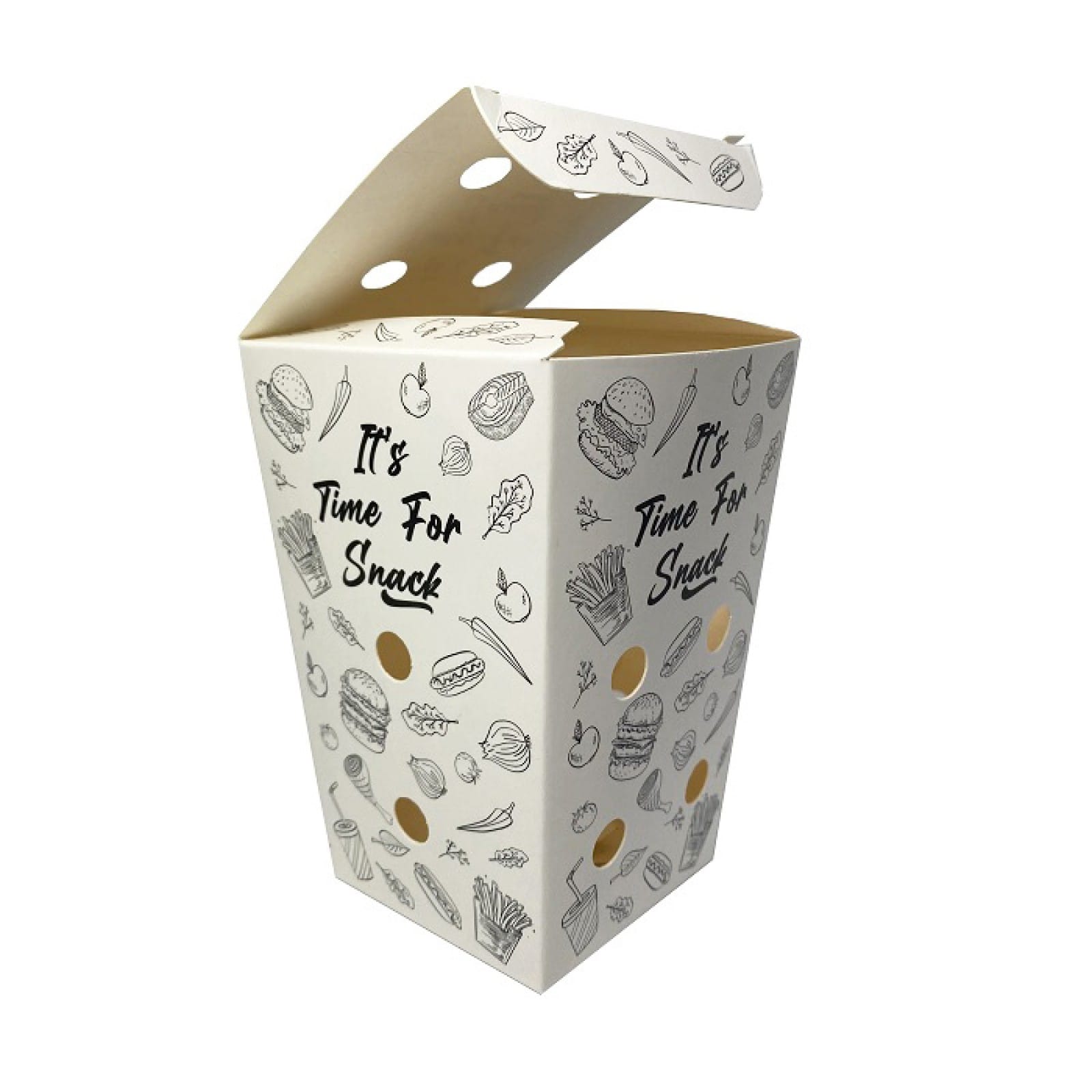 Cutie Cartofi Cu Capac este ambalajul ideal pentru servirea porțiilor de cartofi prăjiți. Cu dimensiuni de 60x60x120 mm, aceste cutii din carton sunt dotate cu folie polietilenă la interior, rezistente la grăsime și căldură, fiind perfecte pentru fast-food-uri și street-food-uri.